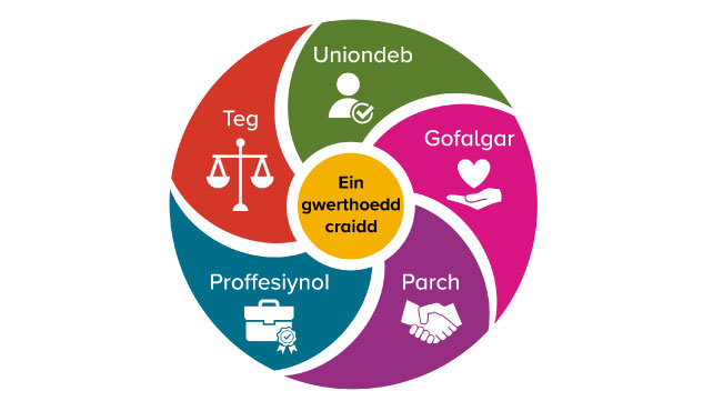 Mae ein gwerthoedd craidd yn sicrhau bod pobl wrth wraidd popeth rydym yn ei wneud ac yn dyheu am fod.